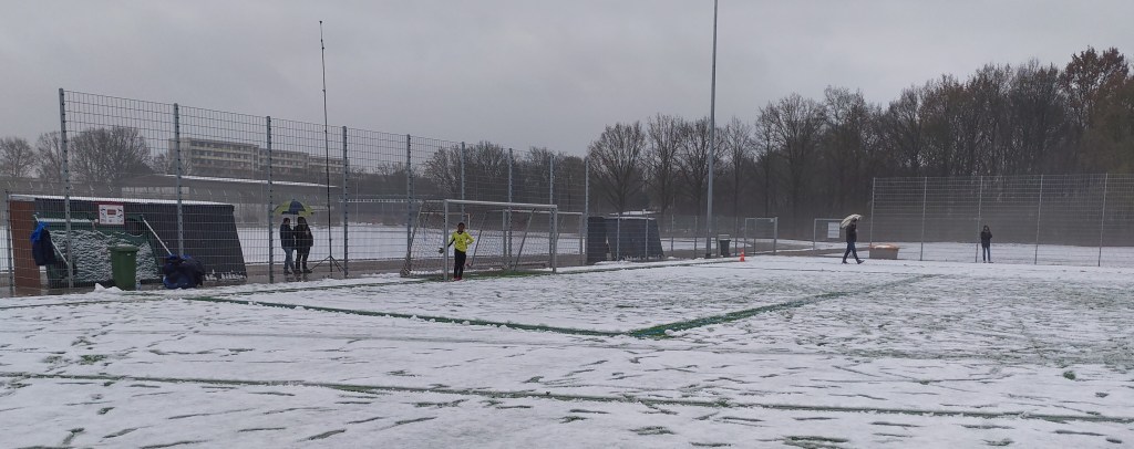 Bei Schneebedeckten Kunstrasen und leichtem Regen ging das Spiel Pünktlich um 10:30 Uhr los.