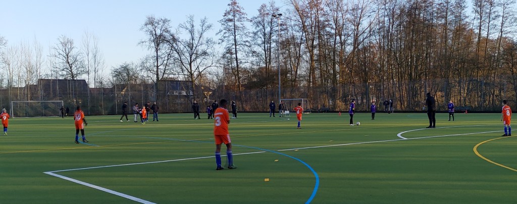 Um 11:00 Uhr ging es dann auf dem sehr guten Kunstrasen bei gefühltem eisigen Wind los.
